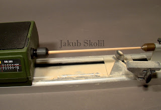 | Soustružení stěžně z bukového dřeva |